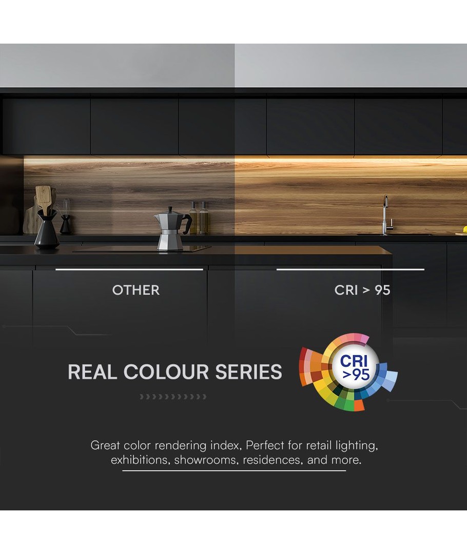 Belysningens ekstra høje RA-værdi på 90-95 sikrer, at lyset præsenterer farver på en levende og naturlig måde. Dette gør stribelyset ideelt til selv de mest krævende og præcise situationer, hvor præcis farvegengivelse er afgørende.