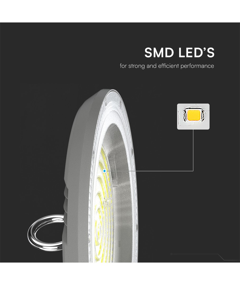 Oplev den kraftfulde 100W LED highbay-lampe, der er designet til at imødekomme behovet for både effektivitet og kvalitet. Denne lampe tilbyder en imponerende lysstyrke på 8300 lumens, hvilket sikrer en optimal belysning i ethvert miljø.