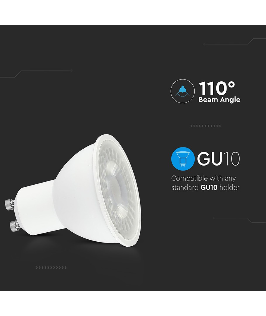 Udstyret med en GU10 fatning, er denne spotlight let at installere og skifte, hvilket gør den til et praktisk valg for både hjemmet og kontoret. Med en lysstyrke på 610 lumens og en imponerende spredning på 110 grader, sikrer den en jævn fordeling af lyset i rummet.