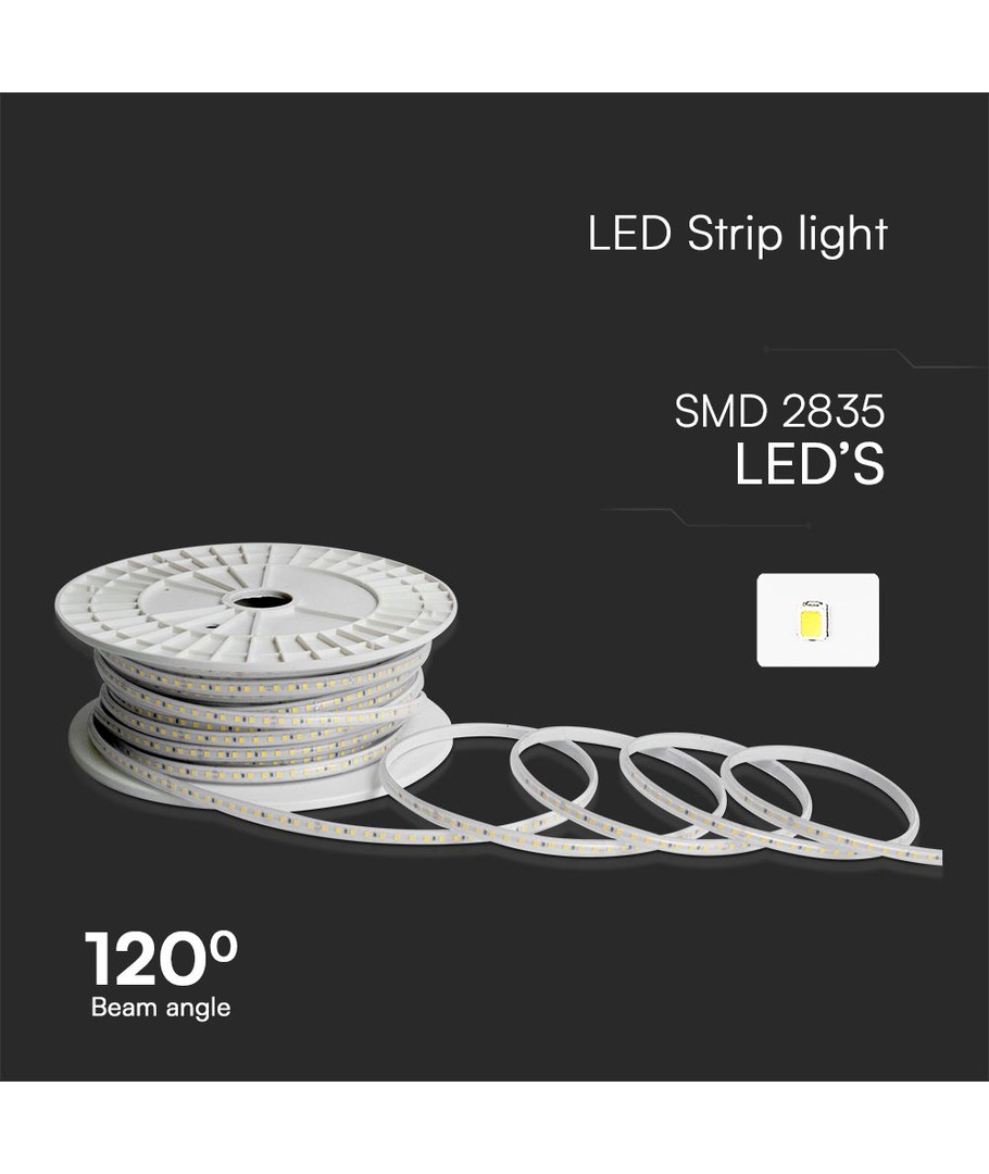 Dette bånd leverer en imponerende 10,5 W/m og kommer i en praktisk rulle på 50 meter. Den kolde hvide farvetemperatur på 6500 K giver et skarpt lys med et blåligt skær, som er ideelt til specifikke anvendelser såsom malerkabiner eller akvarier.