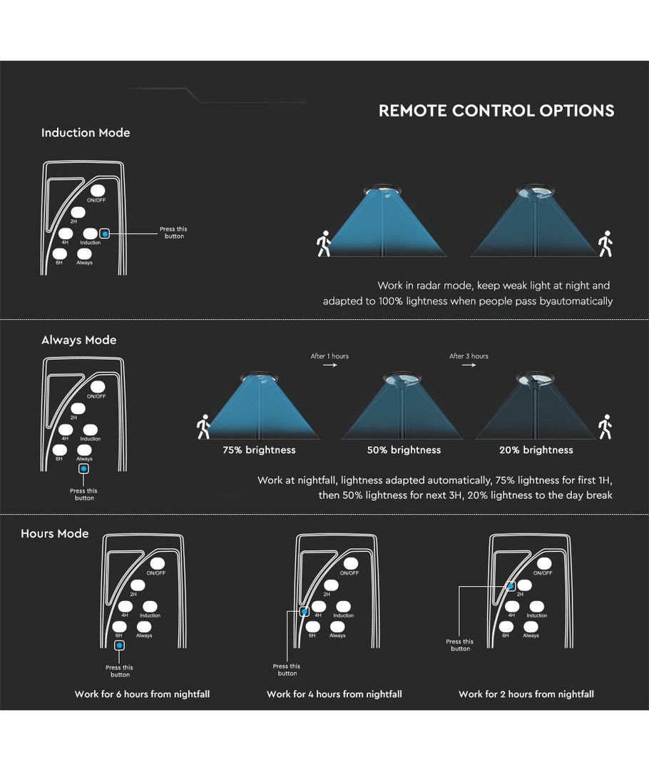 Lampen er solcelledrevet, hvilket betyder, at du ikke behøver at bekymre dig om strømregninger eller ledninger i haven. Den indbyggede sensor sikrer, at lyset kun aktiveres når det er nødvendigt, og RF-fjernbetjeningen giver dig mulighed for at kontrollere lyset på afstand, hvilket tilføjer et ekstra niveau af komfort.