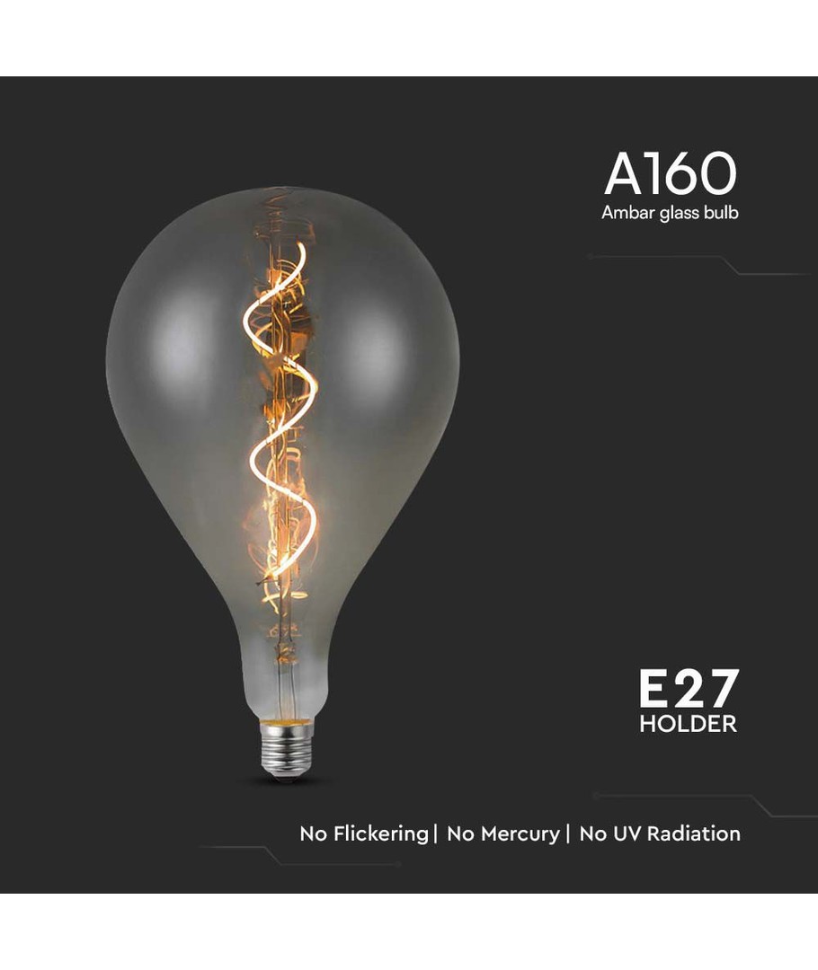 Med sit unikke spiralformede kultrådsdesign i røget glas tilfører pæren et æstetisk element til enhver indretning, hvilket gør den til et attraktivt valg for dem, der værdsætter både stil og funktion.