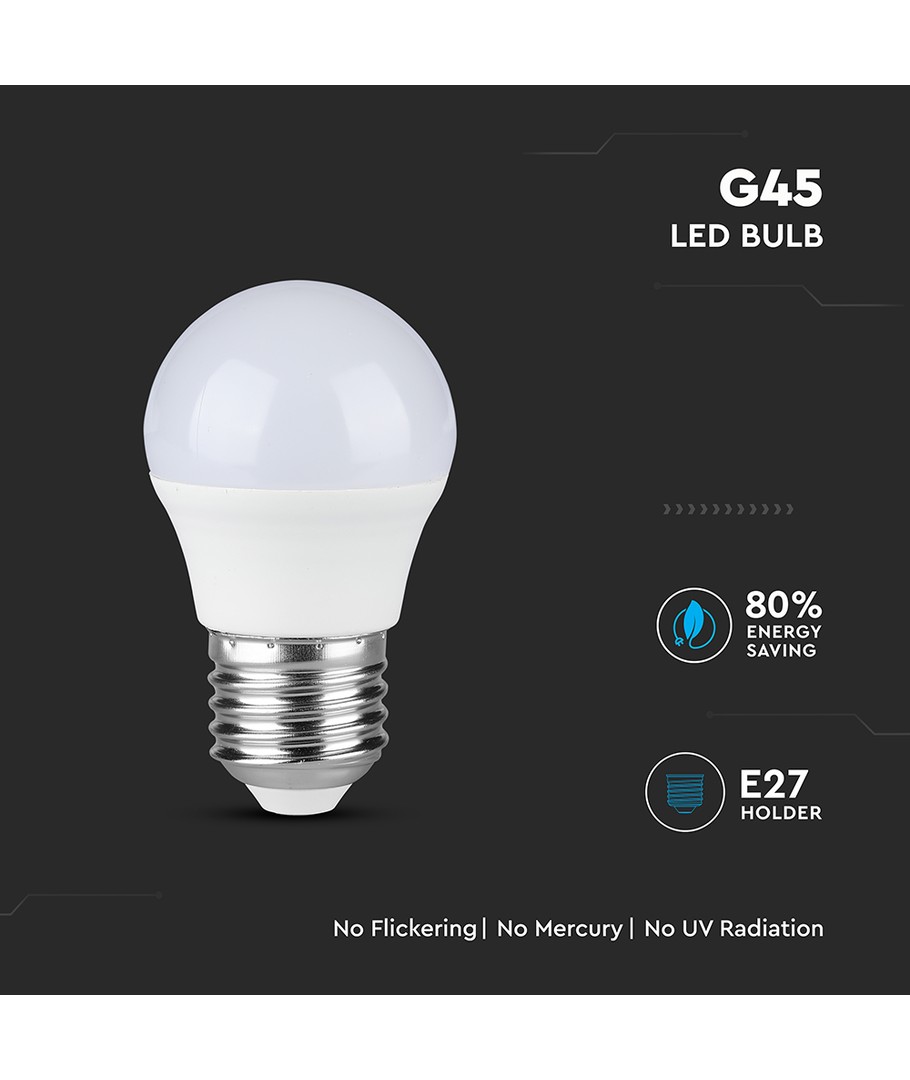 G45 VT-290 pæren tilbyder en høj lyskvalitet med en RA-værdi på 80-85, hvilket garanterer et naturligt lys, der smukt fremhæver alle farver. Denne lyskvalitet opfylder de fleste behov både til hverdag og særlige lejligheder.