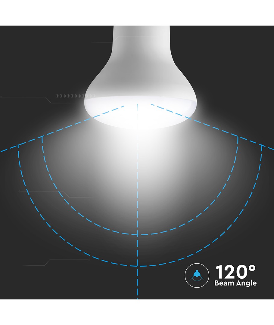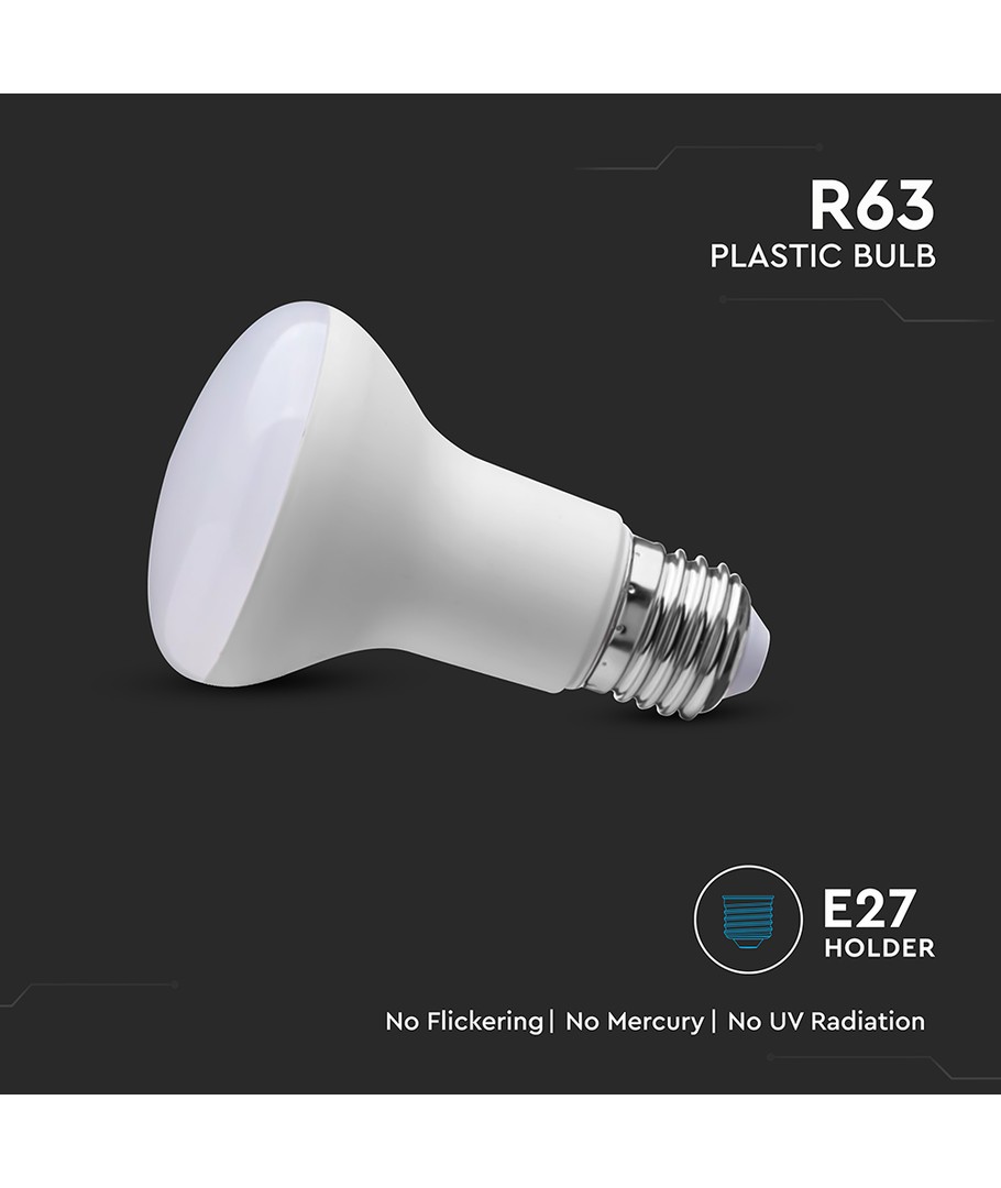 Oplev en energieffektiv og miljøvenlig belysningsløsning med R63 VT-263 LED-pæren. Med et energiforbrug på blot 8.5W og en standard E27 stor fatning passer denne pære perfekt til de fleste armaturer i dit hjem.
