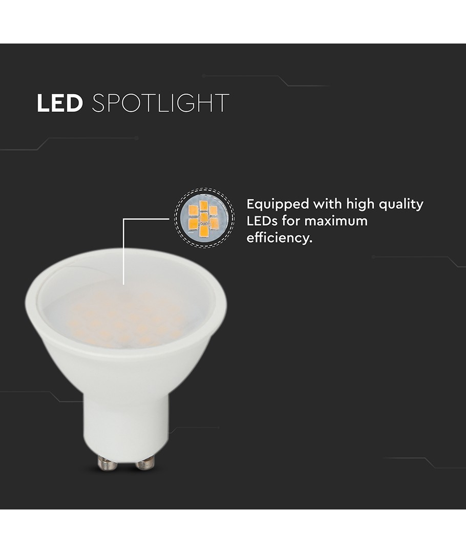 Med en effekt på 2,9W og en GU10 fatning er dette spotlys en alsidig belysningsløsning, der passer perfekt til både privat og professionel brug. Spotlyset leverer en lysstyrke på 250 lumens og har en høj spredningsvinkel på 100 grader, hvilket sikrer en jævn og ensartet fordeling af lyset i rummet.