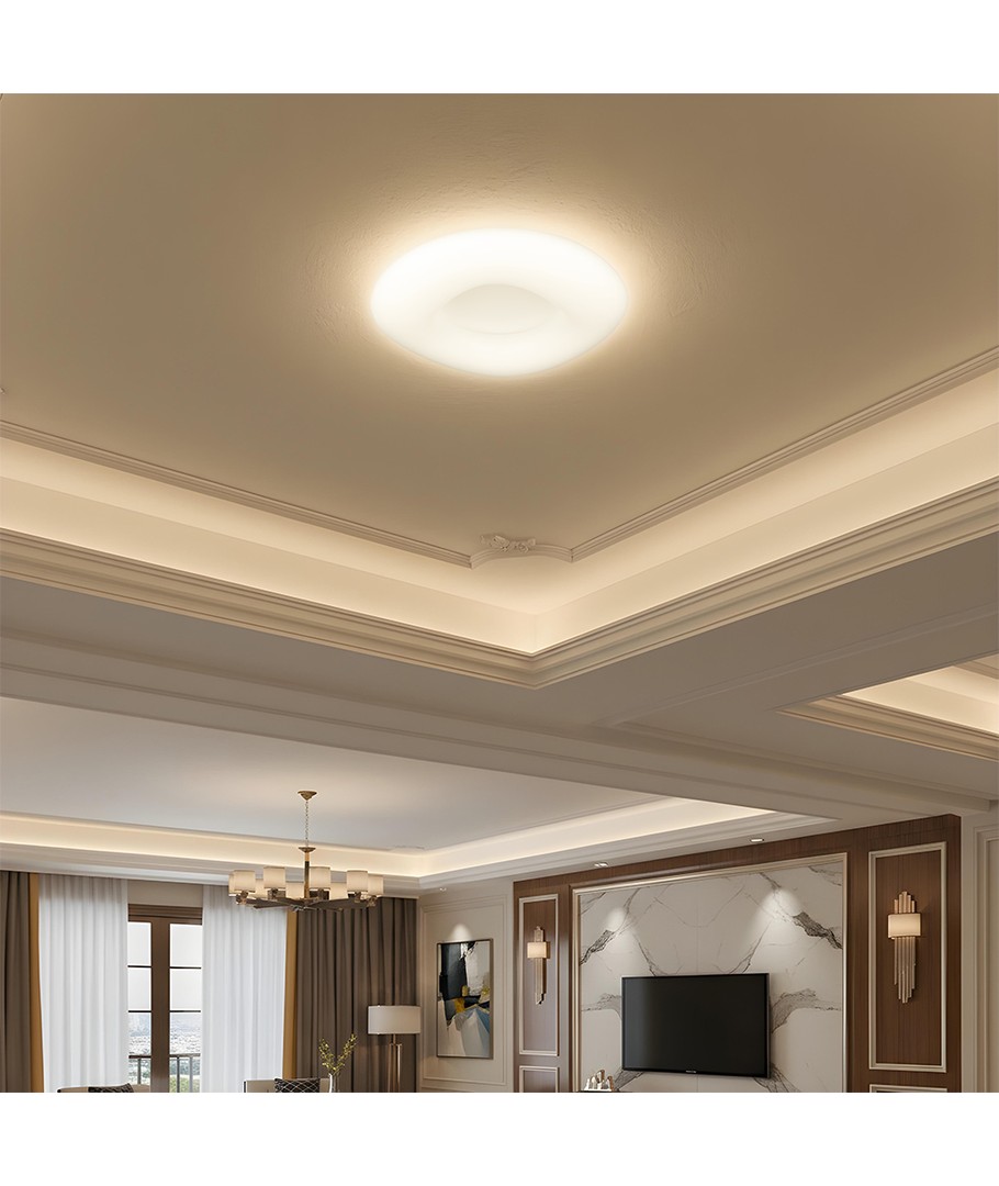 Med sin hvide finish passer denne belysningsløsning ind i ethvert rum og giver et elegant præg til dit hjem eller kontor. Installationen er ligetil med den integrerede lyskilde, hvilket betyder, at du kan nyde godt af det flotte lys lige med det samme uden bekymringer om udskiftning af pærer.