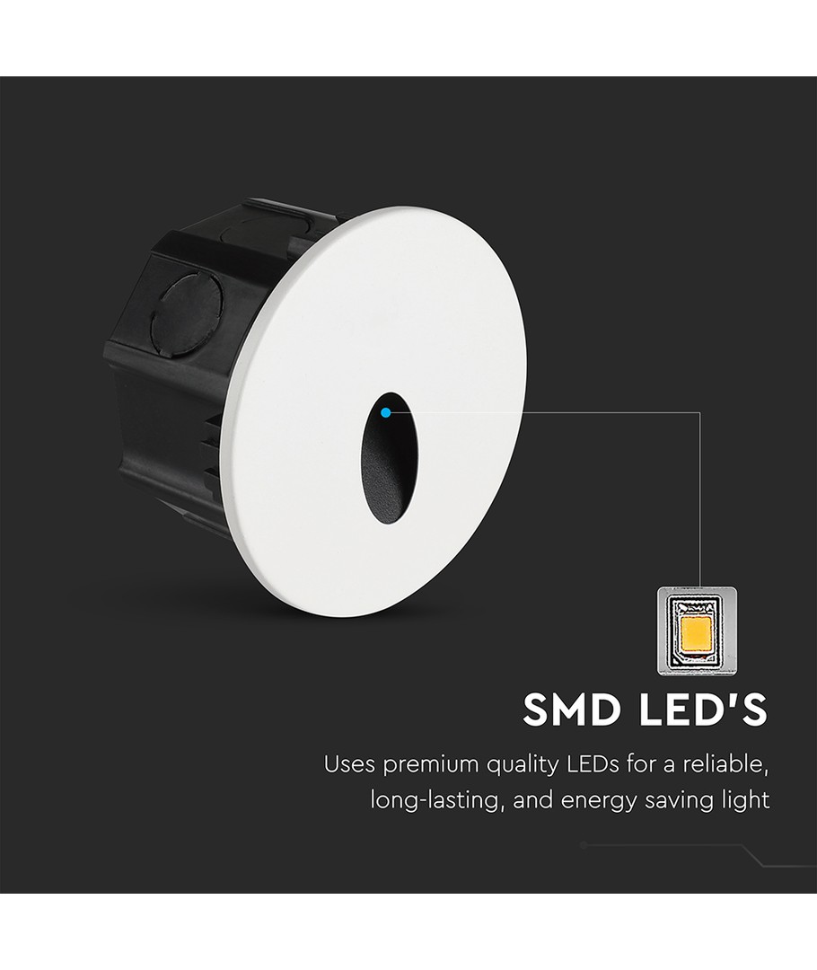 Med en effekt på 3W og en lysstrøm på 170 lumens, giver dette trinlys et klart og defineret lys, der spreder sig i en vinkel på 65/55 grader. Den høje lyskvalitet med en RA-værdi på 80-85 sikrer, at alle farver opleves naturligt og ægte.