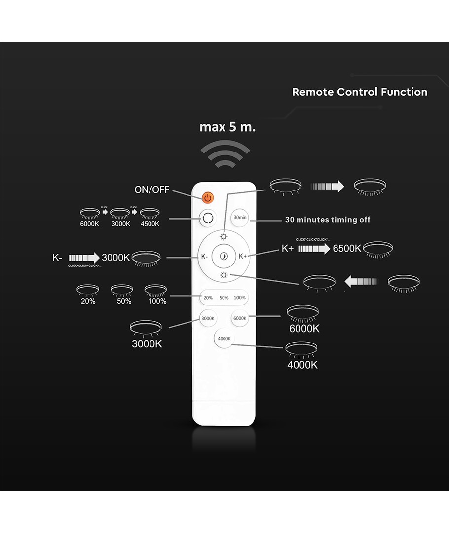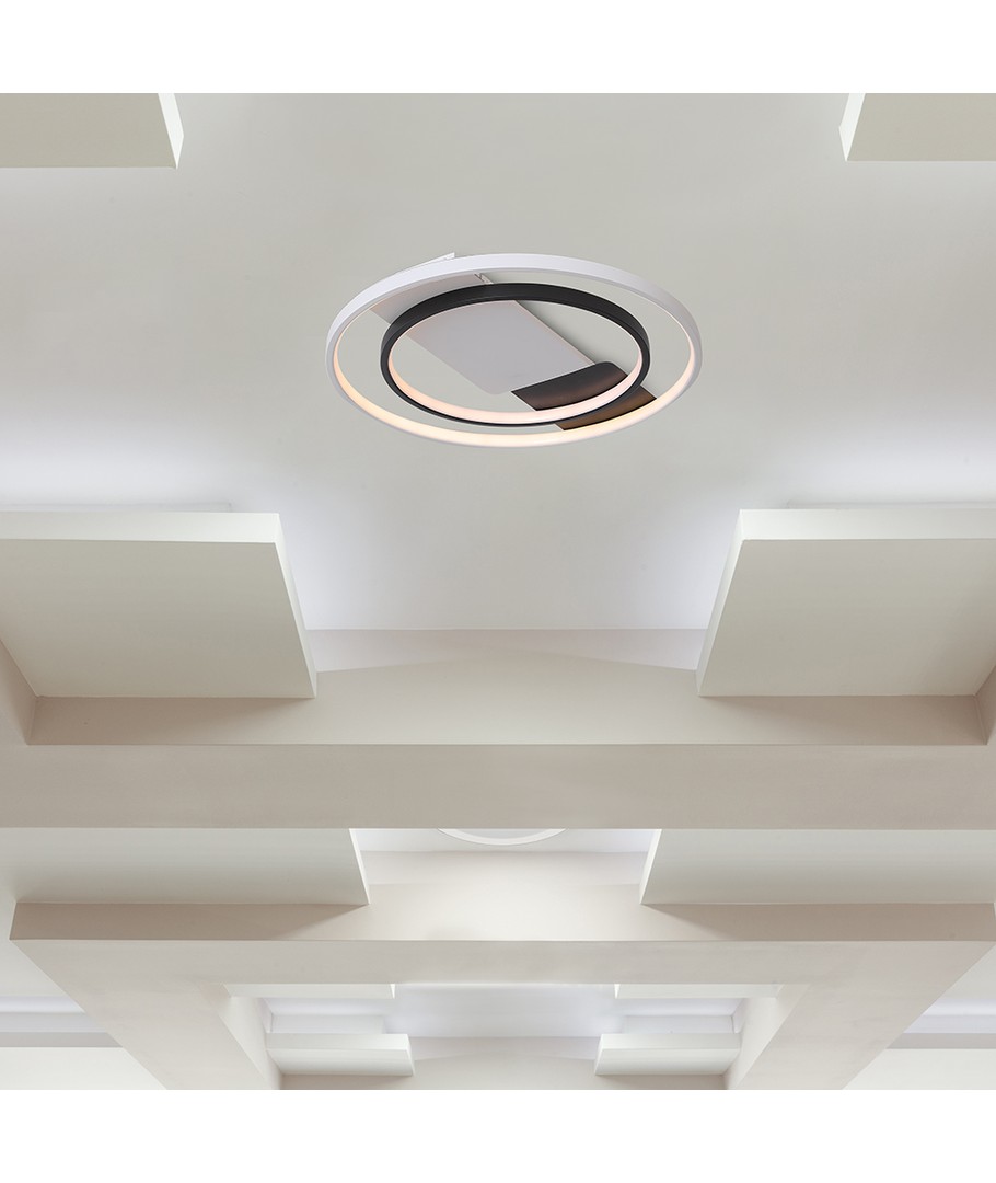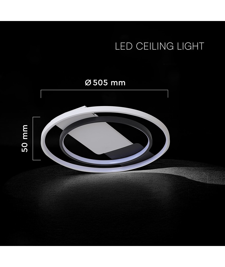 Specifikationer:Loftlampen kommer i en elegant kombination af hvid og sort, hvilket gør den til et stilfuldt valg for ethvert interiør. Den er designet til at være både dekorativ og funktionel. Med den medfølgende IR fjernbetjening kan du nemt justere lyset for at skabe den ønskede atmosfære.