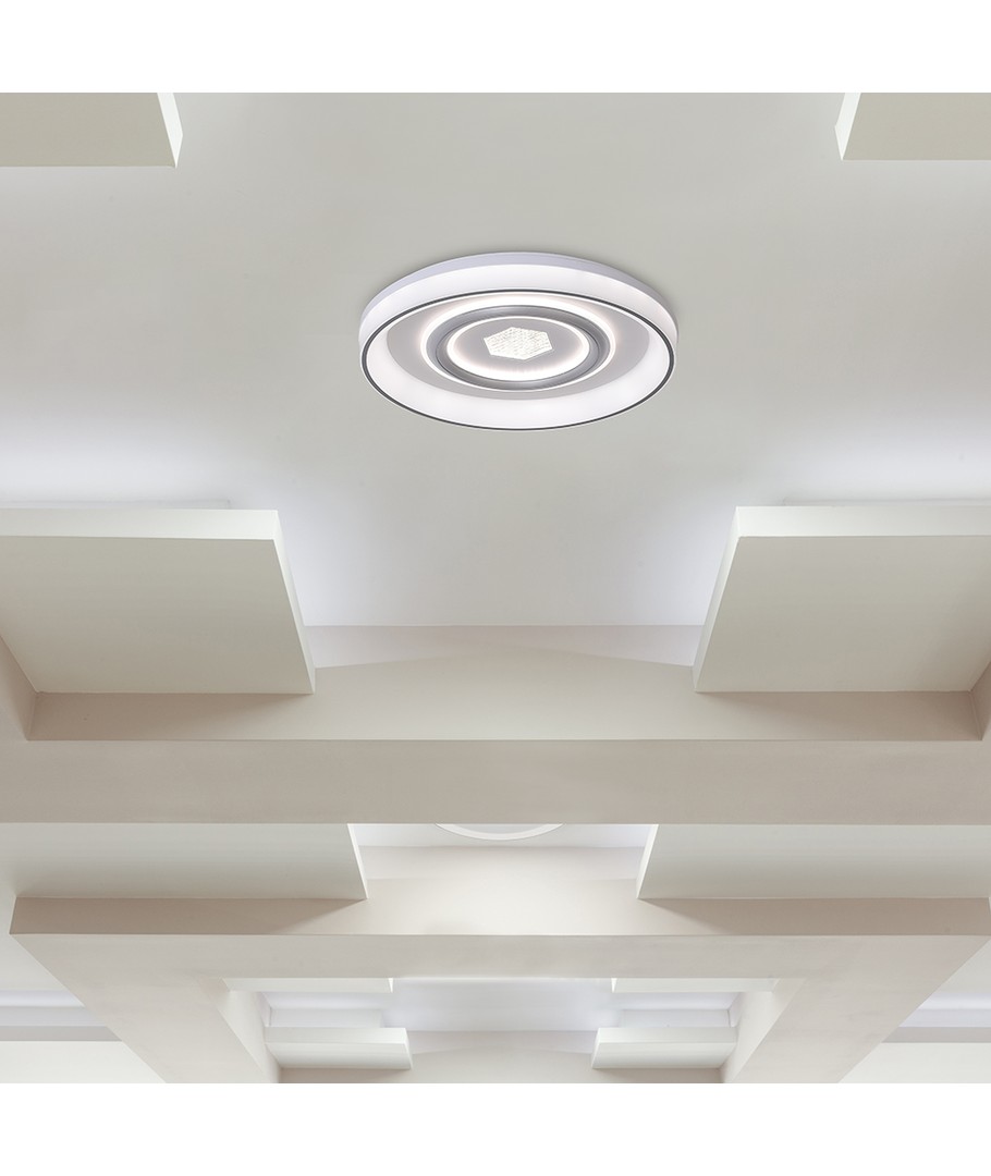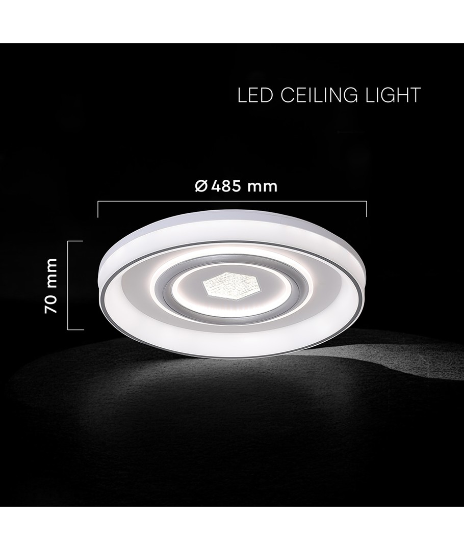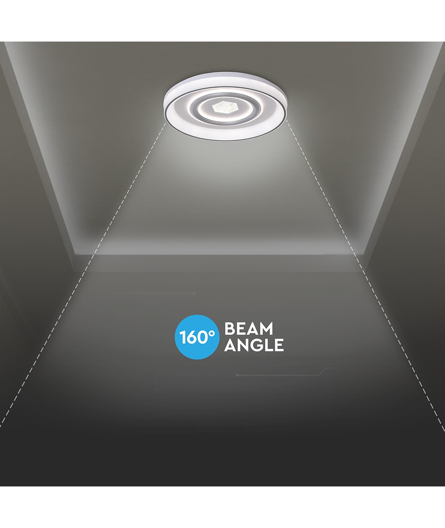 Skab en indbydende atmosfære i dit hjem med denne stilfulde loftlampe. Med en effekt på 55W og en imponerende lysstyrke på 4480 lumens er lampen designet til at lyse rummet perfekt op. Takket være en høj spredning på 160 grader sikrer den en jævn fordeling af lys, hvilket gør den ideel til både små og store rum.