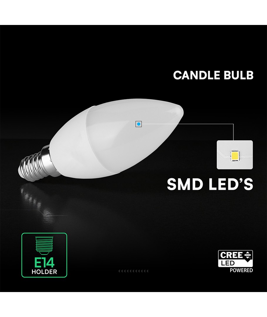 Oplev en betagende lysoplevelse med Vt-268 LED kertepære, der er designet til at give et effektivt og jævnt lys. Med en effekt på 6,5W og en E14 lille fatning er denne pære ideel til mange forskellige armaturer.