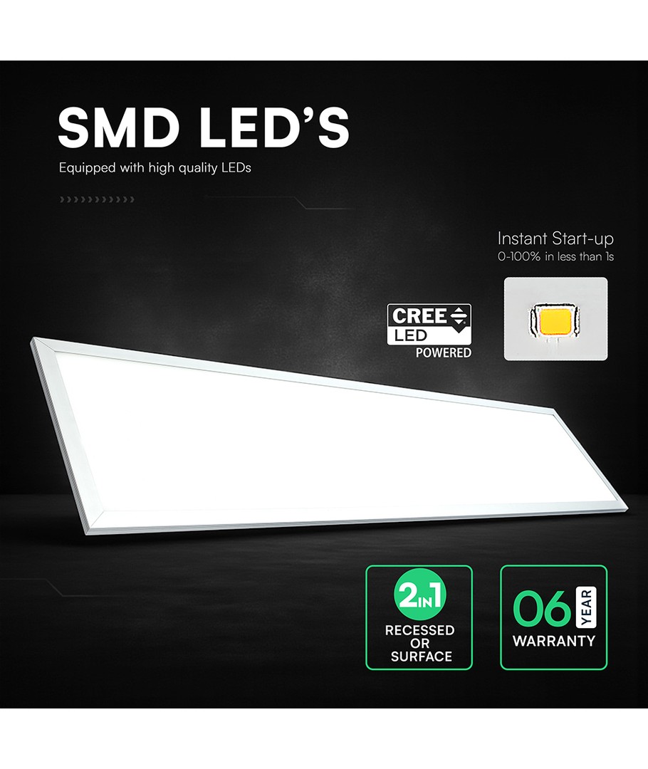 Opgrader din belysning med vores 1200x300mm VT-6147 panel, der leverer en kraftfuld og energieffektiv løsning. Denne LED-lampe kombinerer avanceret teknologi med 40W output for at give et stærkt lys på 4400 lumens. Med en imponerende spredning på 110 grader sikrer den en jævn fordeling af lys i rummet.