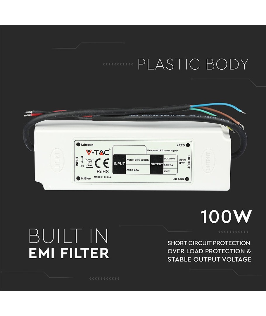Med en IP67-klassificering er denne strømforsyning designet til at modstå barske miljøer og sikrer, at din LED-belysning fungerer optimalt. Den er vandtæt og kan anvendes udendørs, men skal undgås at være helt nedsænket i vand i længere perioder.