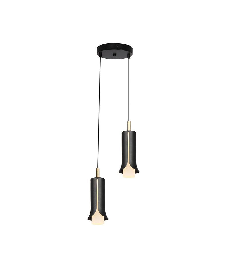 Lampens enkeltstående design med sand-sort og guld detaljer tilføjer et sofistikeret look til din indretning. Dens dimensioner gør den velegnet til forskellige rumstørrelser og højdejusteringer.