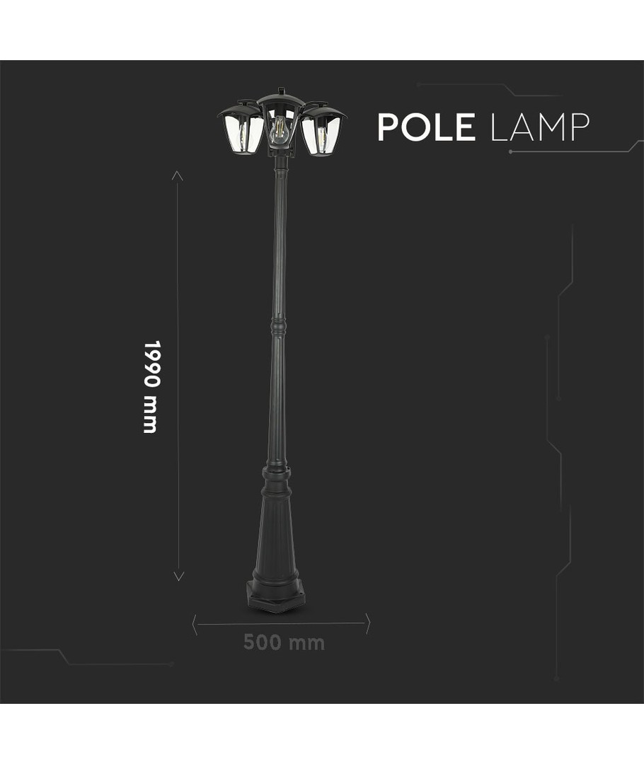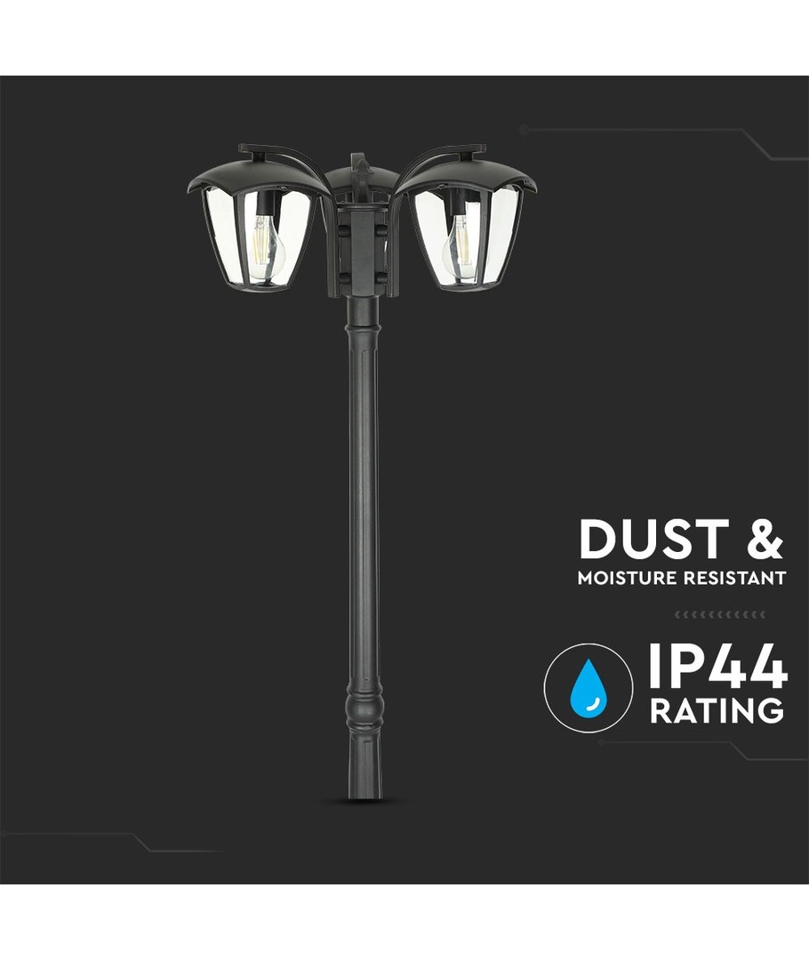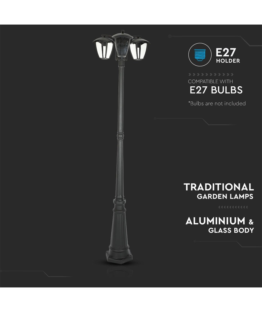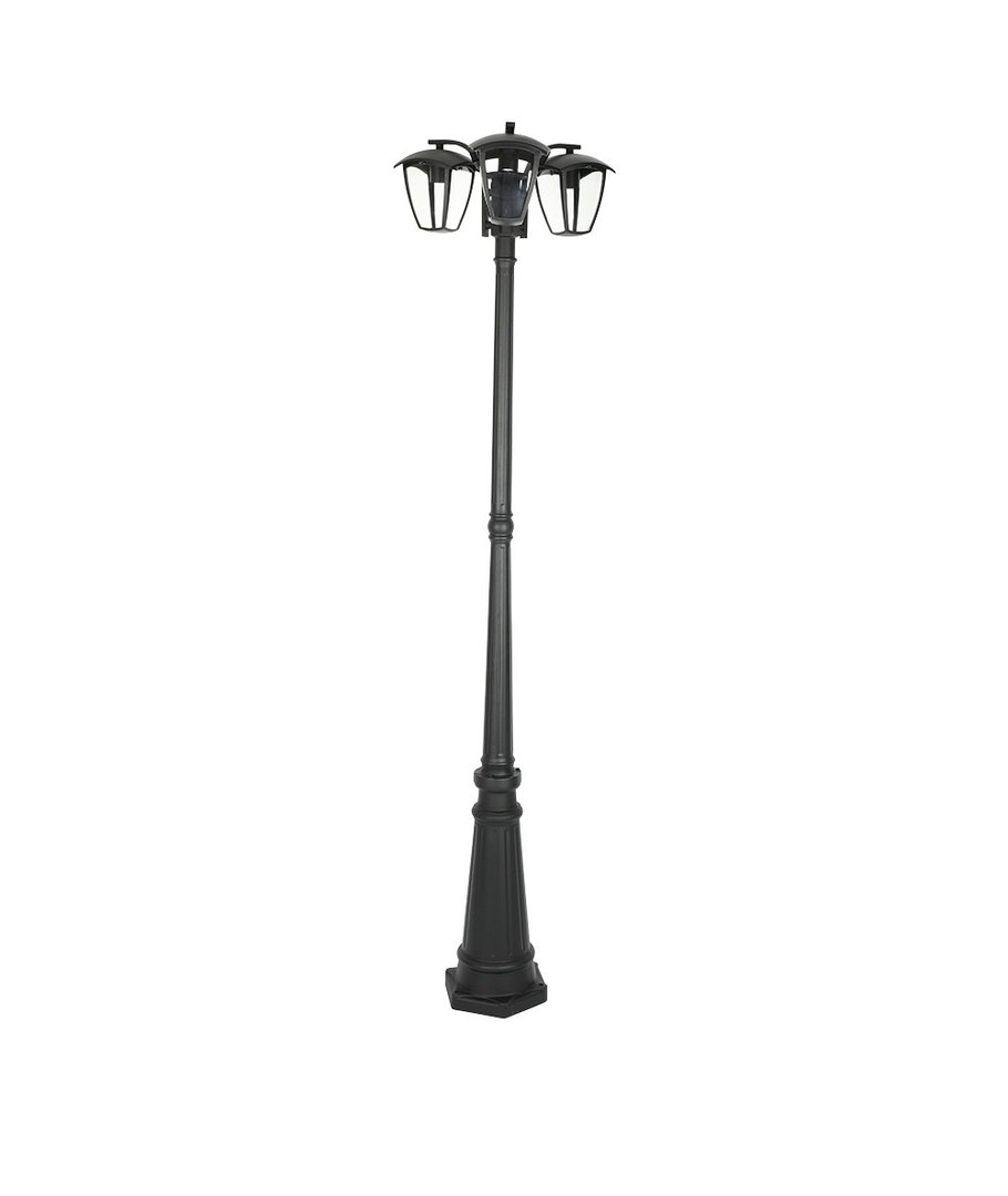 Oplev en kombination af stil og funktionalitet med denne eksklusive pullertlampe. Dens sorte design og tre hoveder giver både klassisk elegance og effektiv belysning til enhver udendørs indretning.