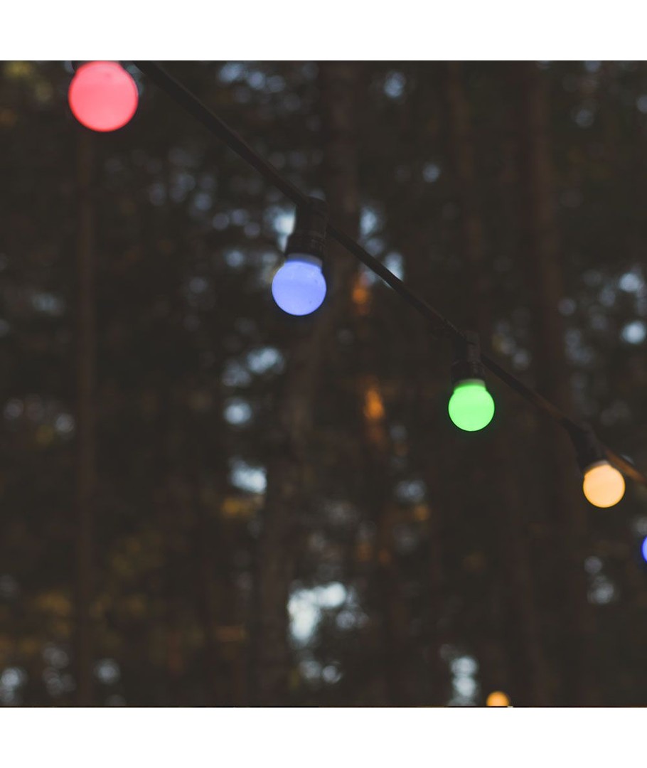 Uanset om du ønsker at skabe en intim atmosfære på din terrasse eller give stuen et pift af farve, vil denne lyskæde være et ideelt valg med sin enkle opsætning og flotte lyseffekter.