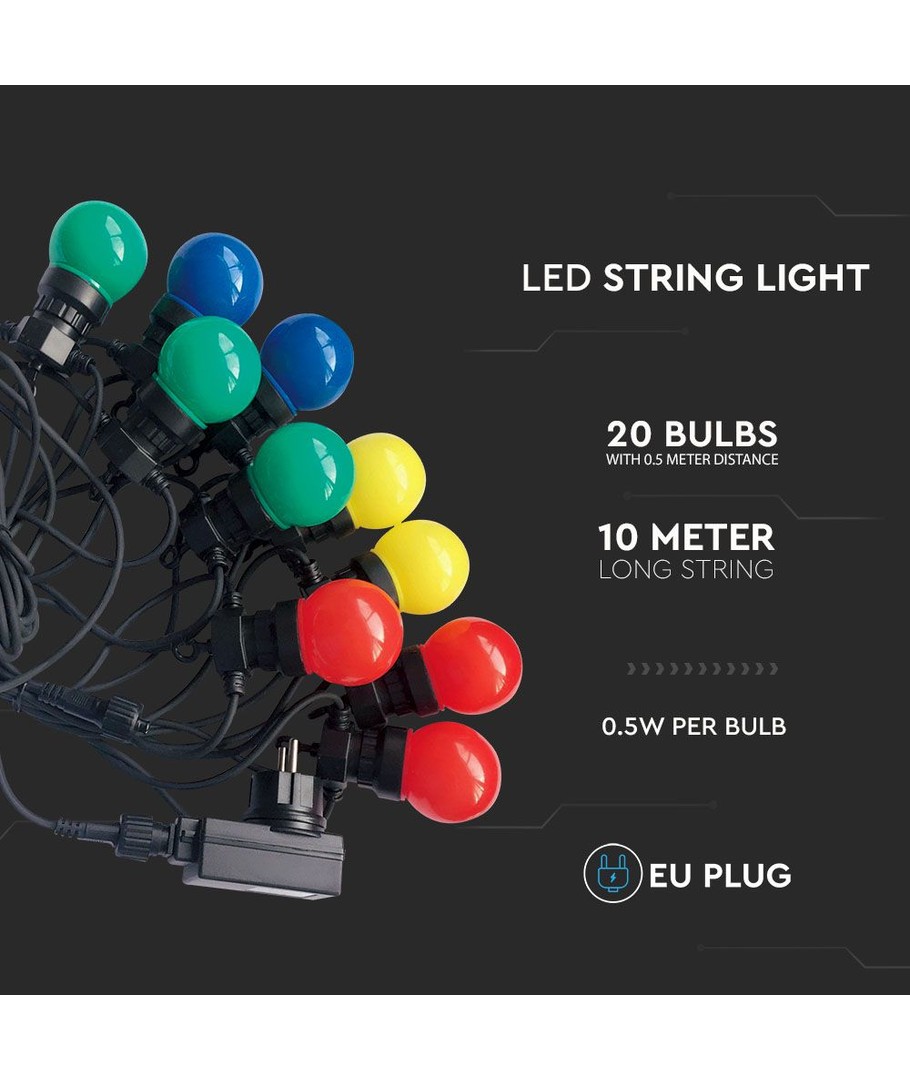 Oplev en betagende belysningsoplevelse med denne 10M VT-71020 LED lyskæde, designet til at bringe farver og lys ind i dit hjem eller have. Denne LED lyskæde er udstyret med 20 pærer, som giver et vidunderligt RGBY lysspektrum, der kan tilføje en unik atmosfære til enhver lejlighed.