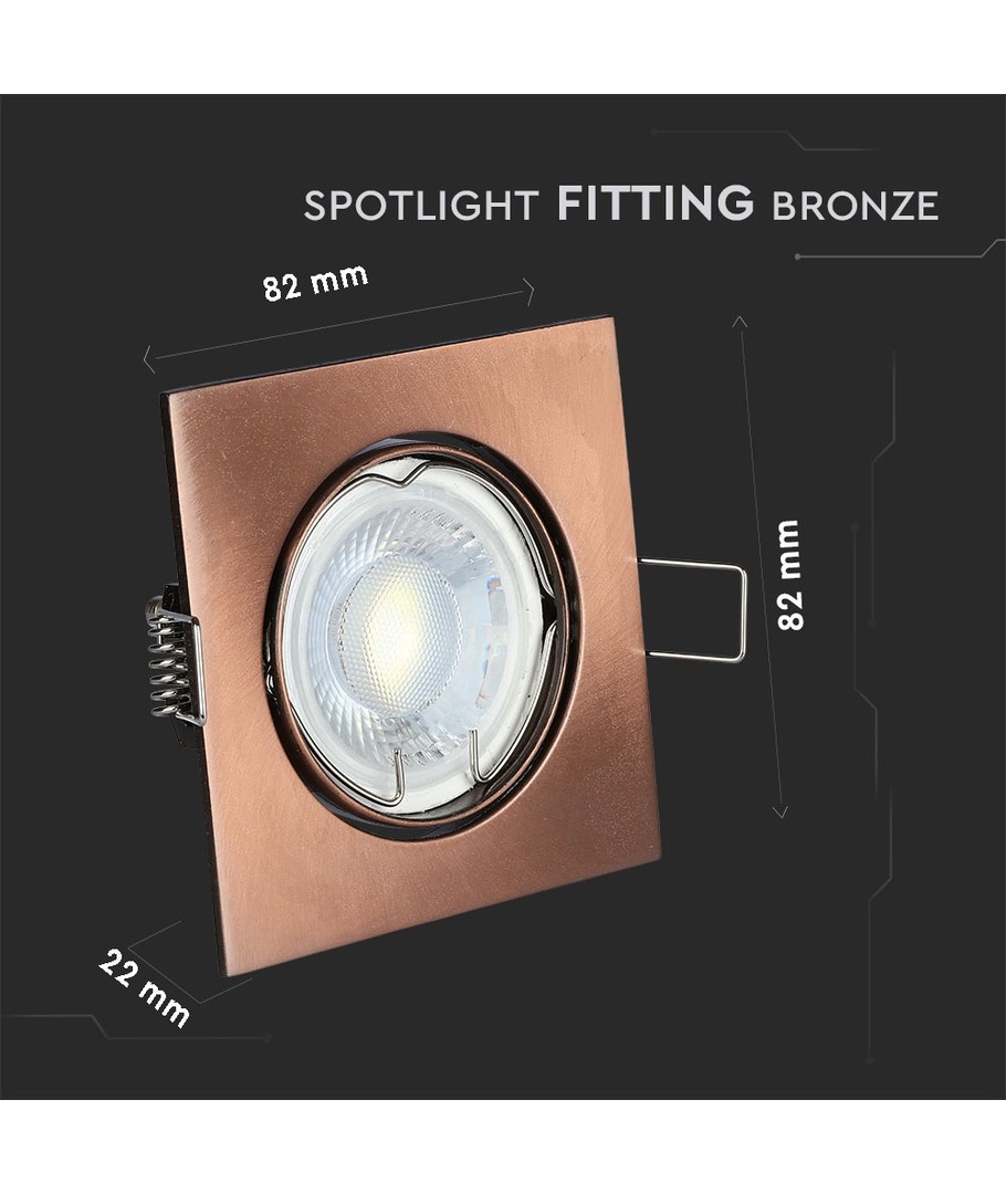 Opgrader dit belysningssystem med denne stilfulde og holdbare lampefatning. Denne firkantede lampefatning i bronze farve er en del af den eksklusive V-Tac Pro serie, hvor kvalitet og design går hånd i hånd. Ideel til både bolig- og erhvervsbrug, skaber den en sofistikeret atmosfære i ethvert rum.