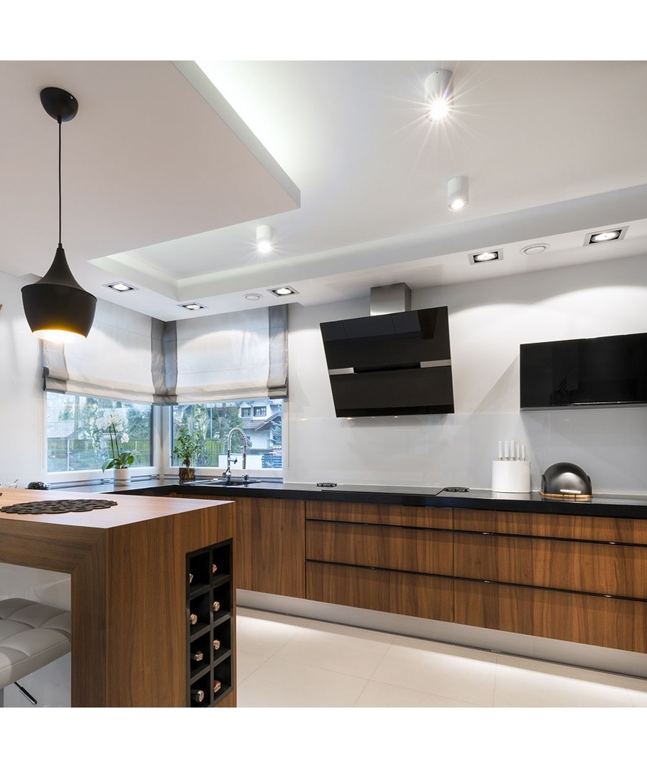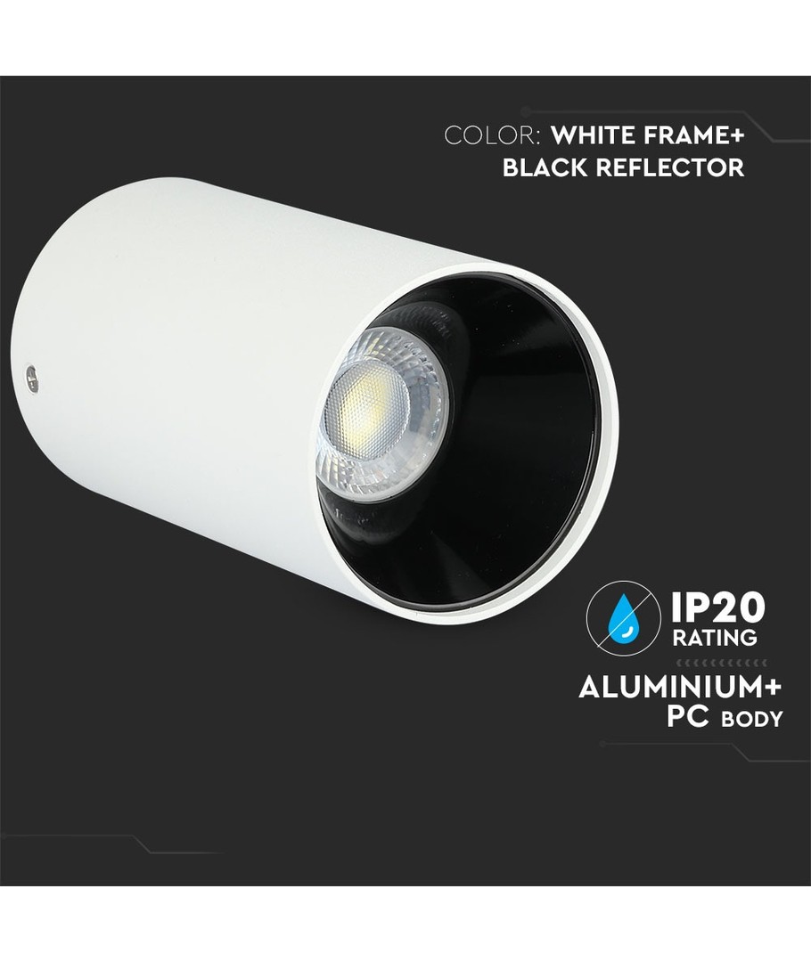 Lampehovedet er designet til at passe GU10-pærer, hvilket gør det nemt at finde de rette lyskilder, der passer til dine belysningsbehov. Med det elegante hvid+sort design, passer lampen nemt ind i moderne, stilfulde interiører, og tilføjer et minimalistisk præg til ethvert rum.