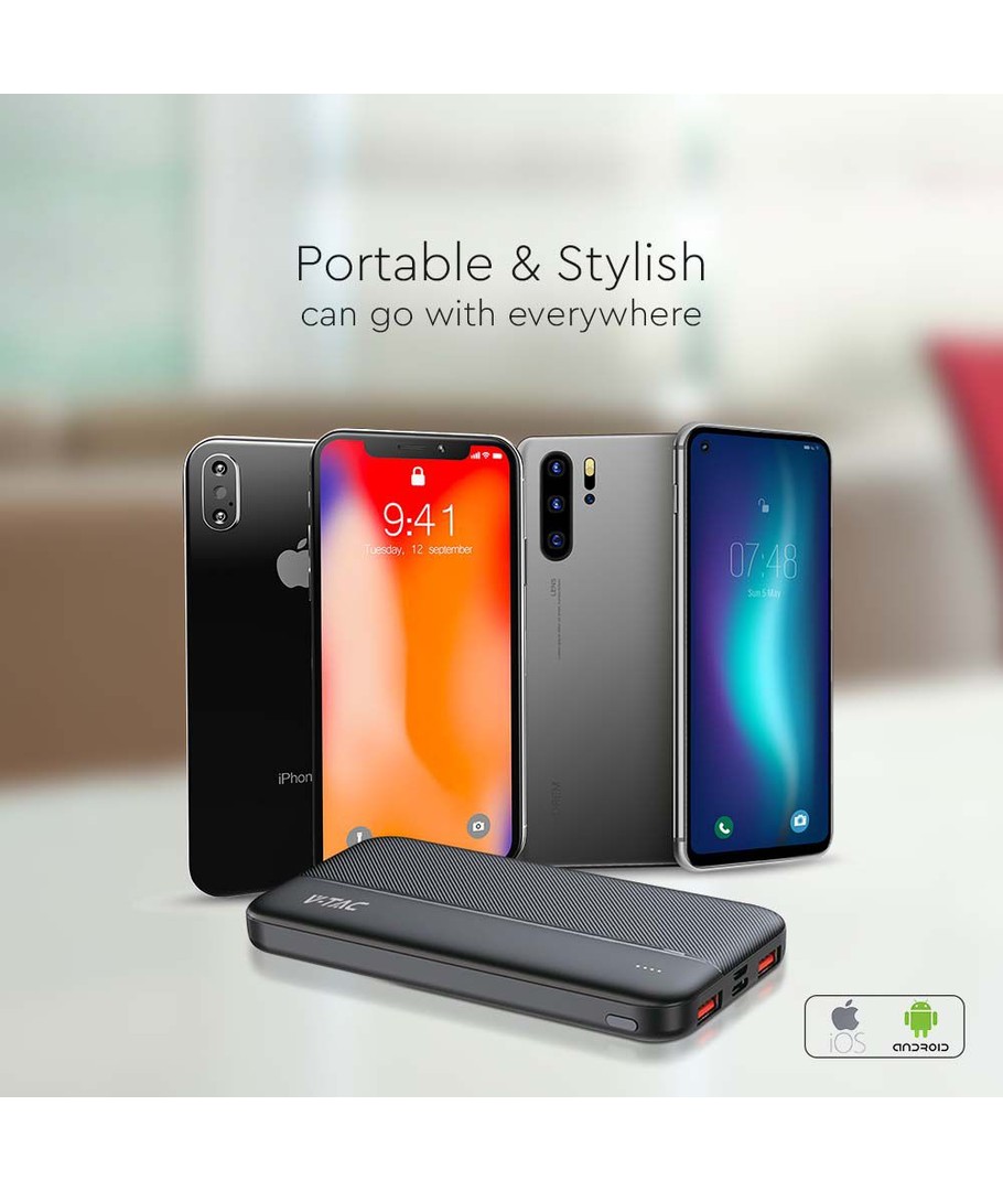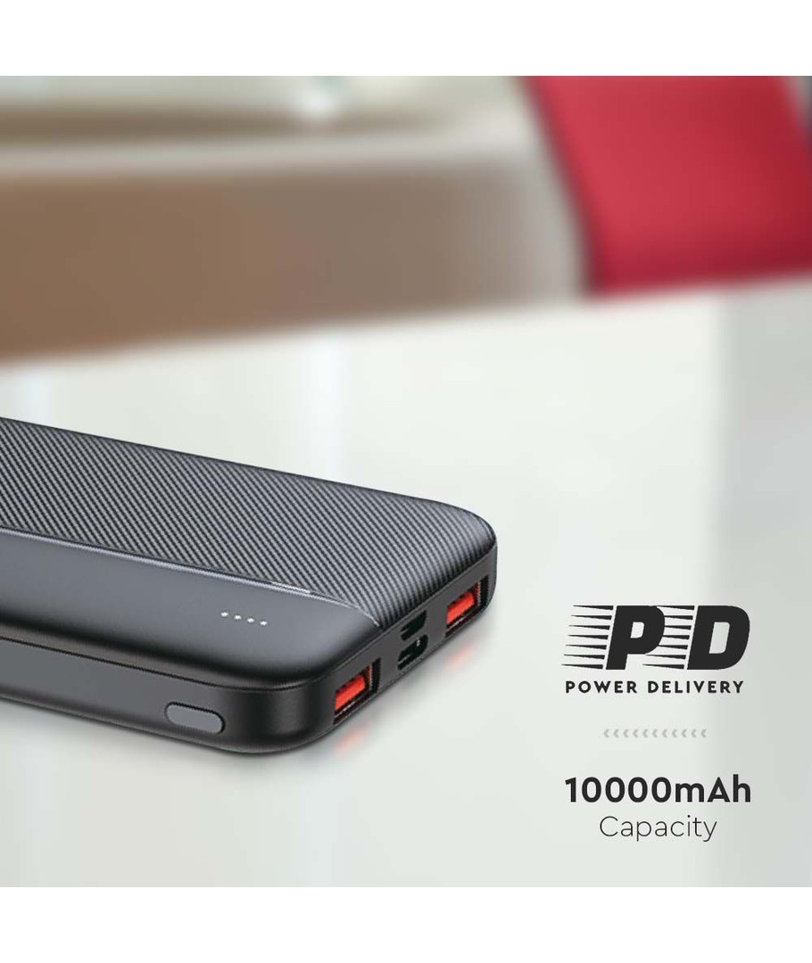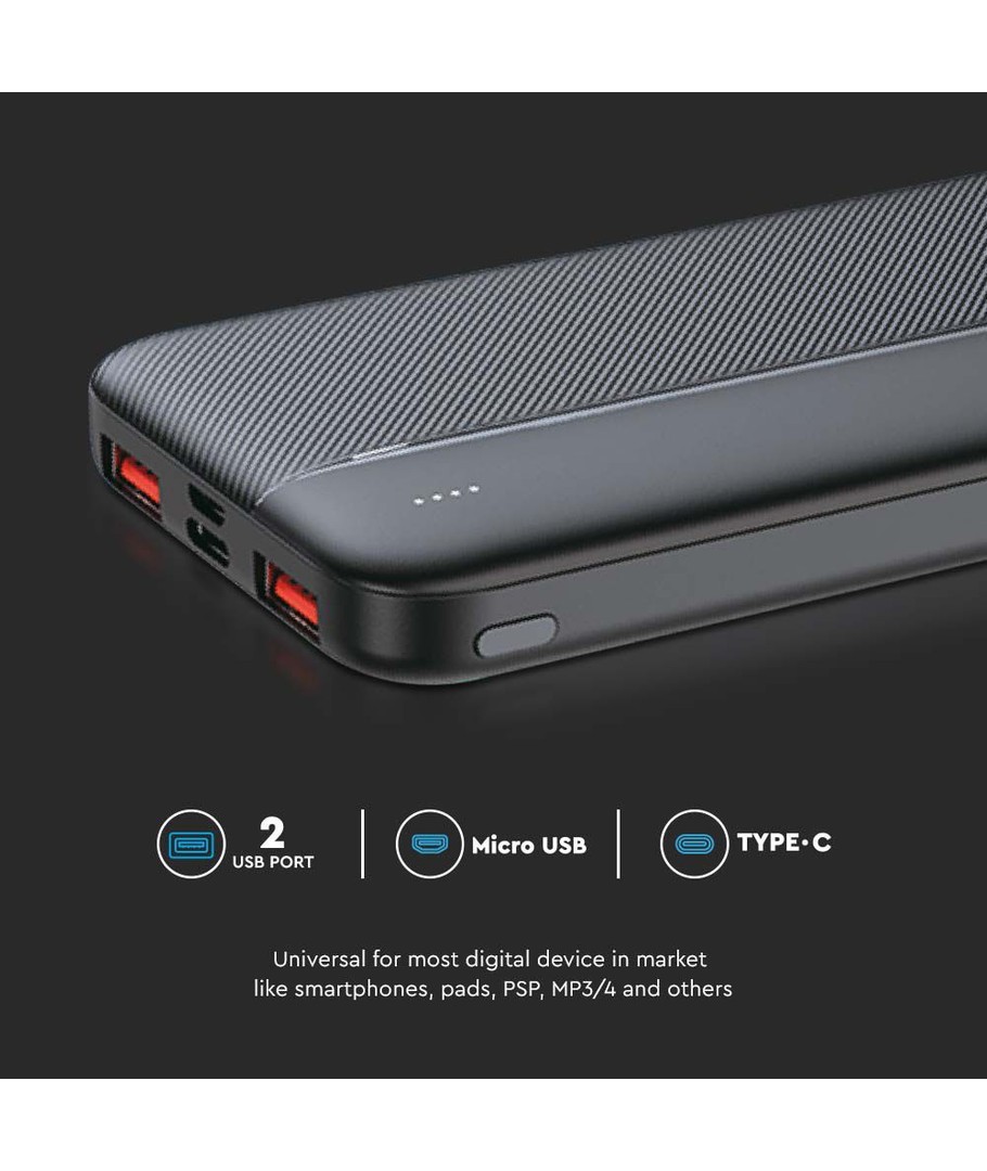 10000mAh Powerbank, 22.5W PD - Ultra-tynd, sort, fast charging, LED indikator V-TAC Udvid