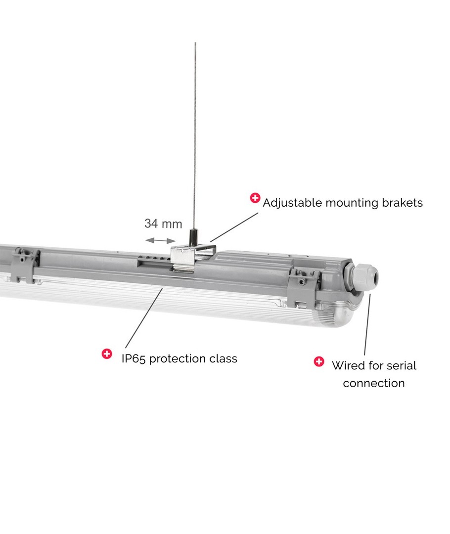 Med dimensionerne på 1310 x 63 x 90 mm er dette armatur en pladsbesparende og effektiv løsning til forskellige belysningsbehov. Limea T8 LED dobbeltarmatur er det perfekte valg til både erhvervslivet og private områder, hvor pålidelig og kraftfuld belysning er nødvendig.