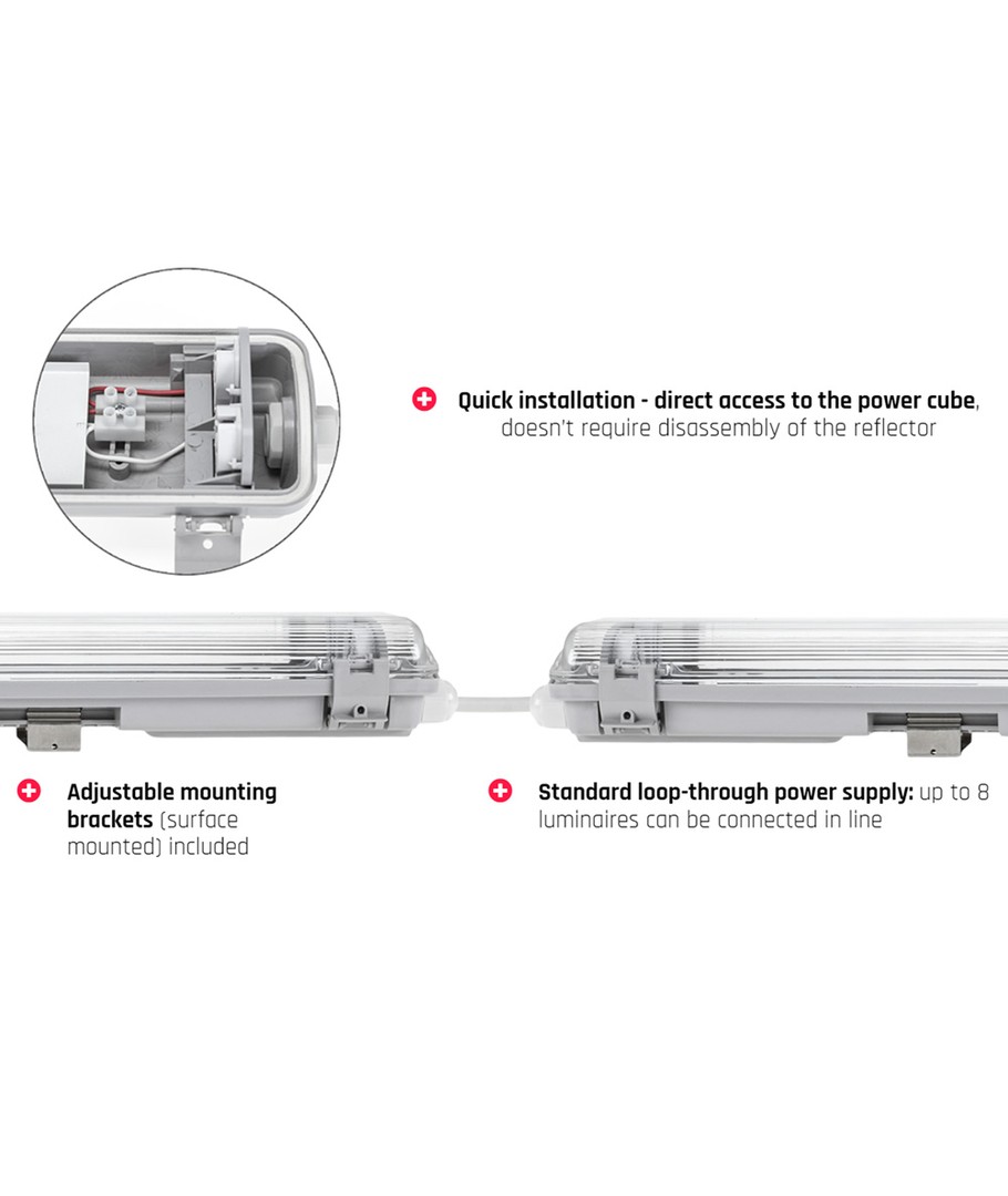 Vandtæt armatur klar til 2 x 60cm LED rør.