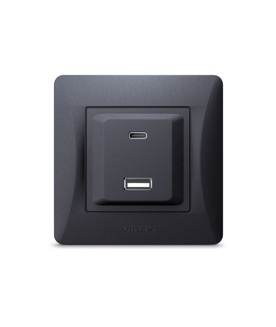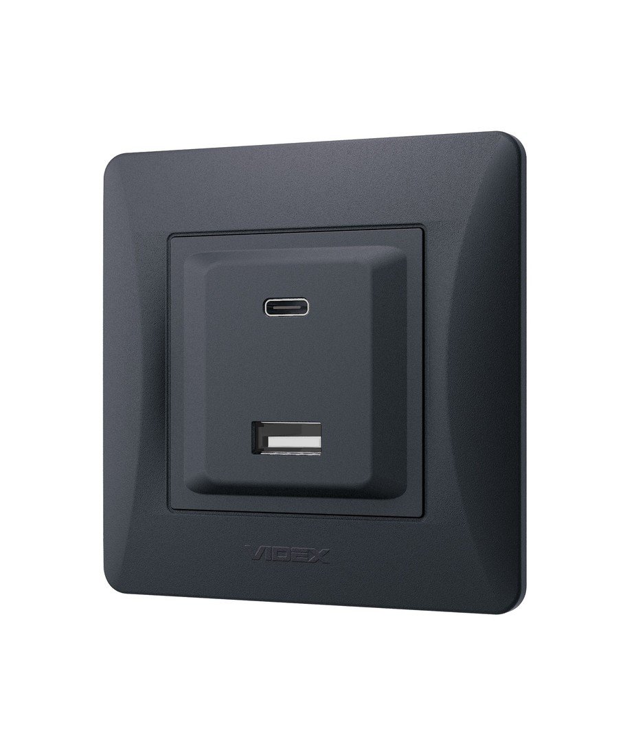 USB-A + Type-C stikkontakt 20W hurtiglader - Sort grafit, 2.4A, IP20 indendørs Videx Udvid