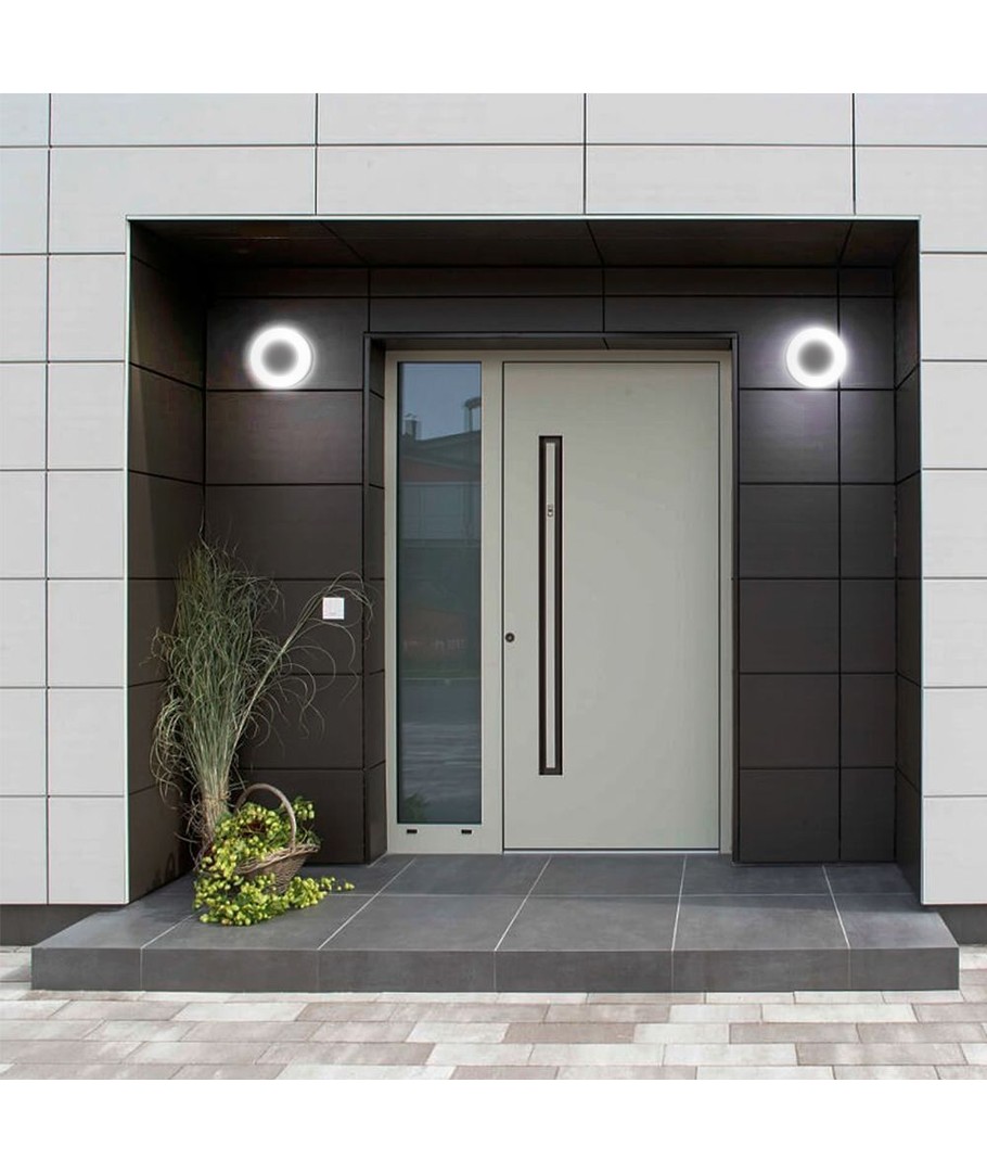 Væglampen har en kompakt størrelse på 320 x 320 x 50 mm, hvilket gør den nem at montere i forskellige områder. Med en IP65 klassificering er den robust nok til udendørs brug, da den kan tåle både vandstænk og regn, hvilket gør den yderst alsidig.