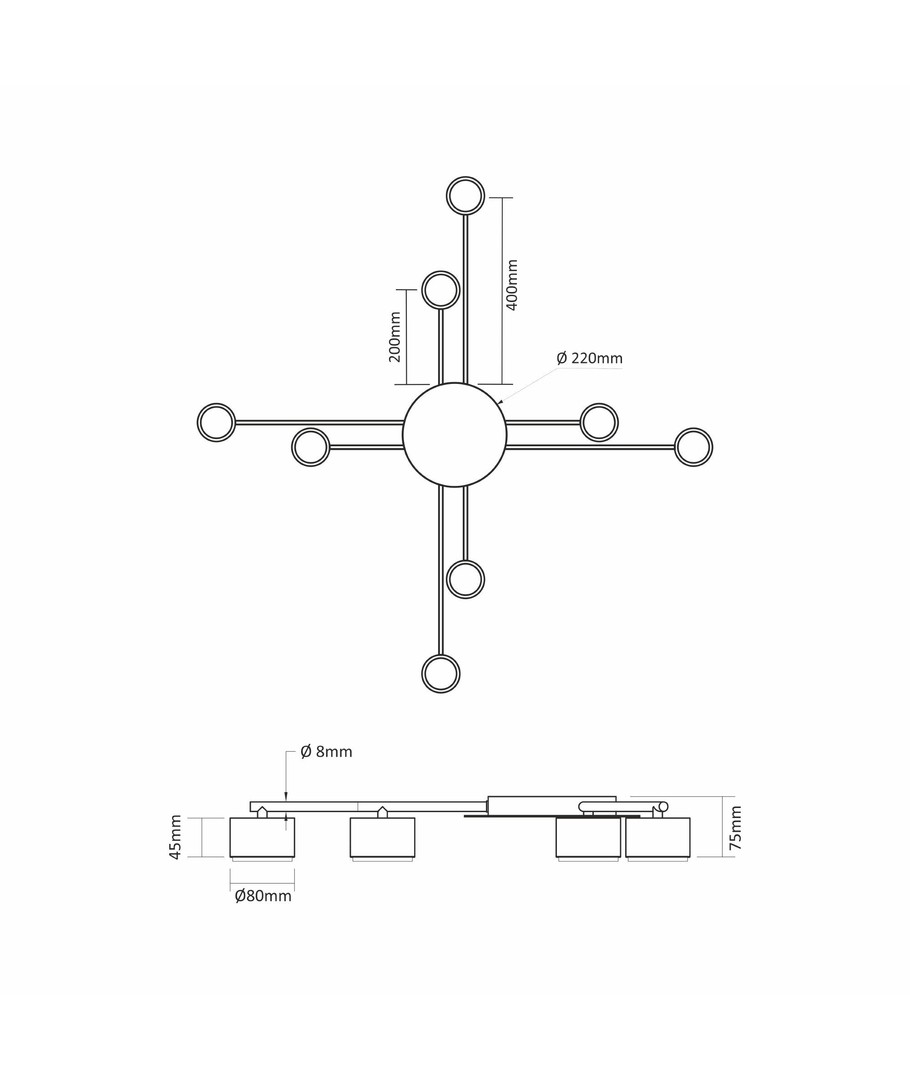 Armaturet er kompakt med dimensionerne 80 x 220 x 45 mm, hvilket gør det ideelt til en række loftstyper uden at virke dominerende i rummet.