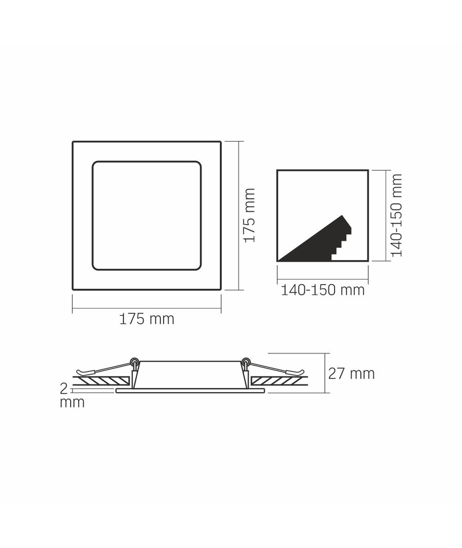Ved anvendelse af komponenter af høj kvalitet og en driftssikker driver kan du forvente en konsistent ydeevne med minimal reduktion i lysstyrke over tid. Det kompakte design på 175 x 175 x 27 mm gør det let at installere i forskellige miljøer, mens den integrerede lyskilde garanterer en nem installation.