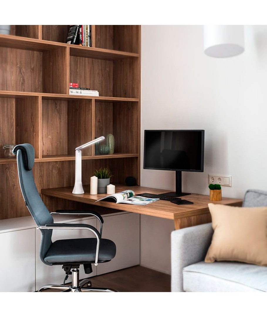 Med sit kompakte design passer lampen perfekt på ethvert skrivebord uden at optage for meget plads, mens den samtidig tilbyder fremragende belysning.