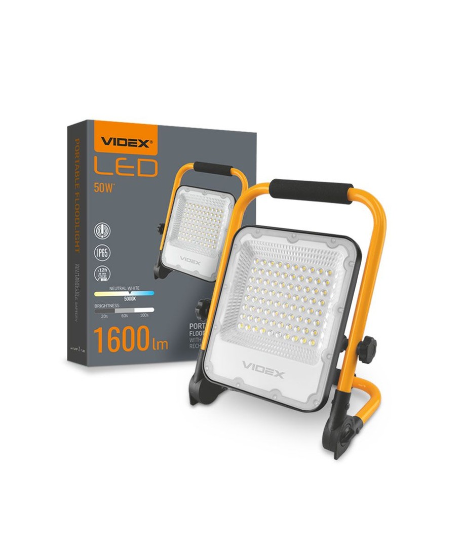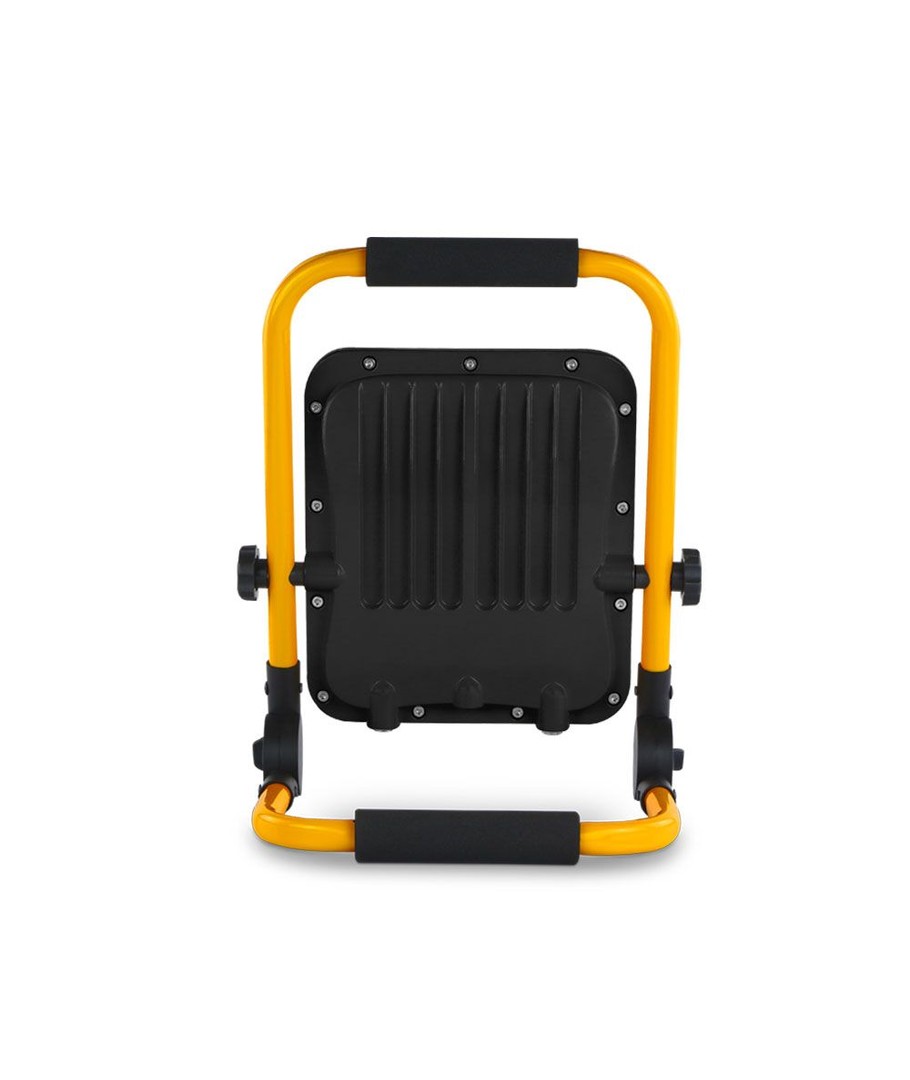 Den genopladelige 50W projektør på stander er en alsidig og robust belysningsløsning, ideel til både indendørs og udendørs brug.