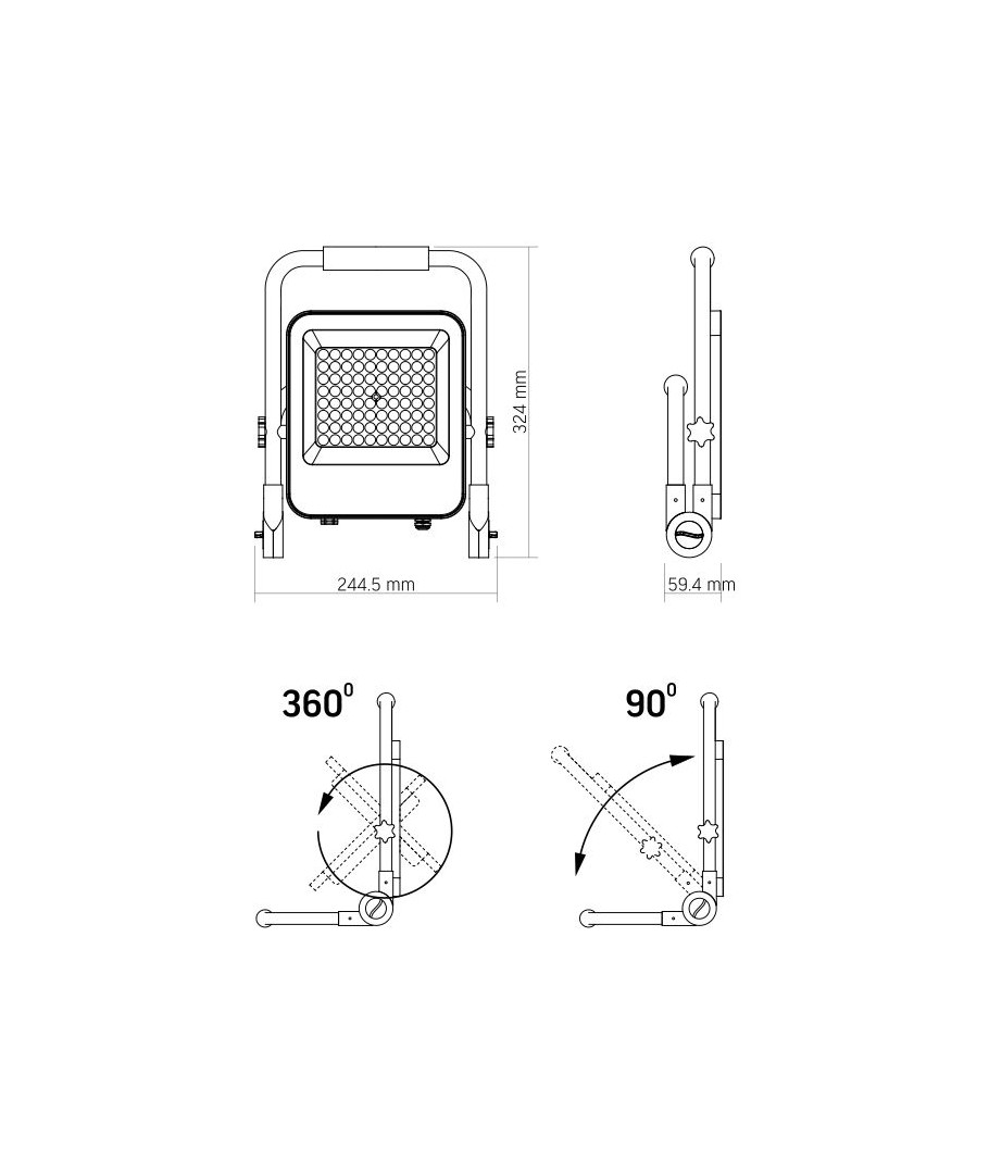 Den kompakte størrelse på 244.5 x 324 x 59.4 mm gør den nem at flytte rundt og placere, hvor der er brug for den mest optimale belysning.
