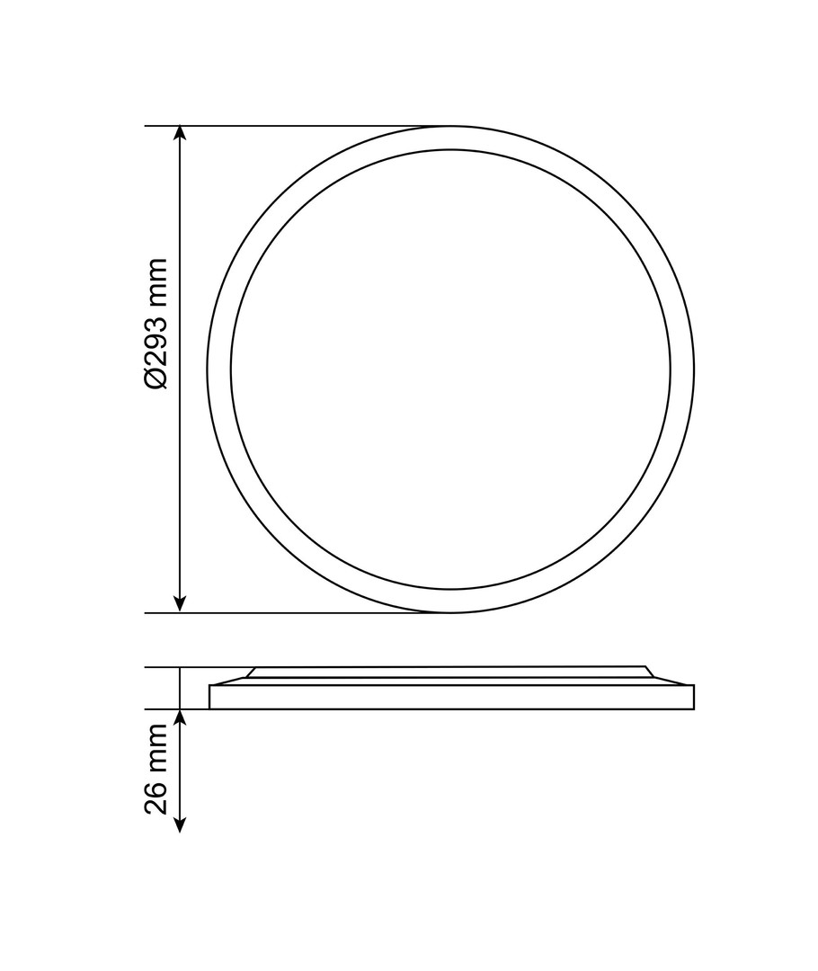 Dimensioner: 293 x 293 x 26 mm. En kompakt størrelse, der let integrerer sig i forskellige indretningsstile uden at dominere rummet.